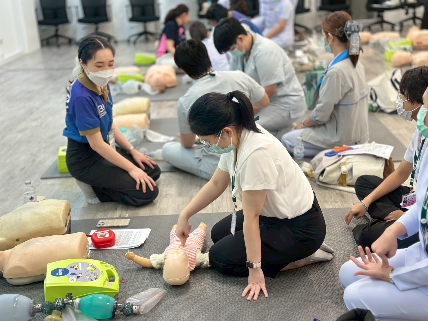เมื่อวันที่ 3 ตุลาคม 2025 ศูนย์จำลองสถานการณ์ บริษัทแพทย์ไทย 88 ได้จัดหลักสูตร AHA BLS for Healthcare Provider สำหรับบุคลากรทางการแพทย์จากโรงพยาบาลเจ้าพระยา สะท้อนถึงความมุ่งมั่นในการพัฒนาทักษะการช่วยชีวิตขั้นพื้นฐาน หลักสูตรครอบคลุมการช่วยชีวิตขั้นพื้นฐานตามมาตรฐาน American Heart Association รวมถึงเทคนิค CPR คุณภาพสูง การใช้ AED และการจัดการทางเดินหายใจ ผู้เข้าอบรมแสดงความพึงพอใจสูงต่อเนื้อหาและวิทยากร พร้อมนำความรู้ไปประยุกต์ใช้ในการดูแลผู้ป่วยอย่างมีประสิทธิภาพ