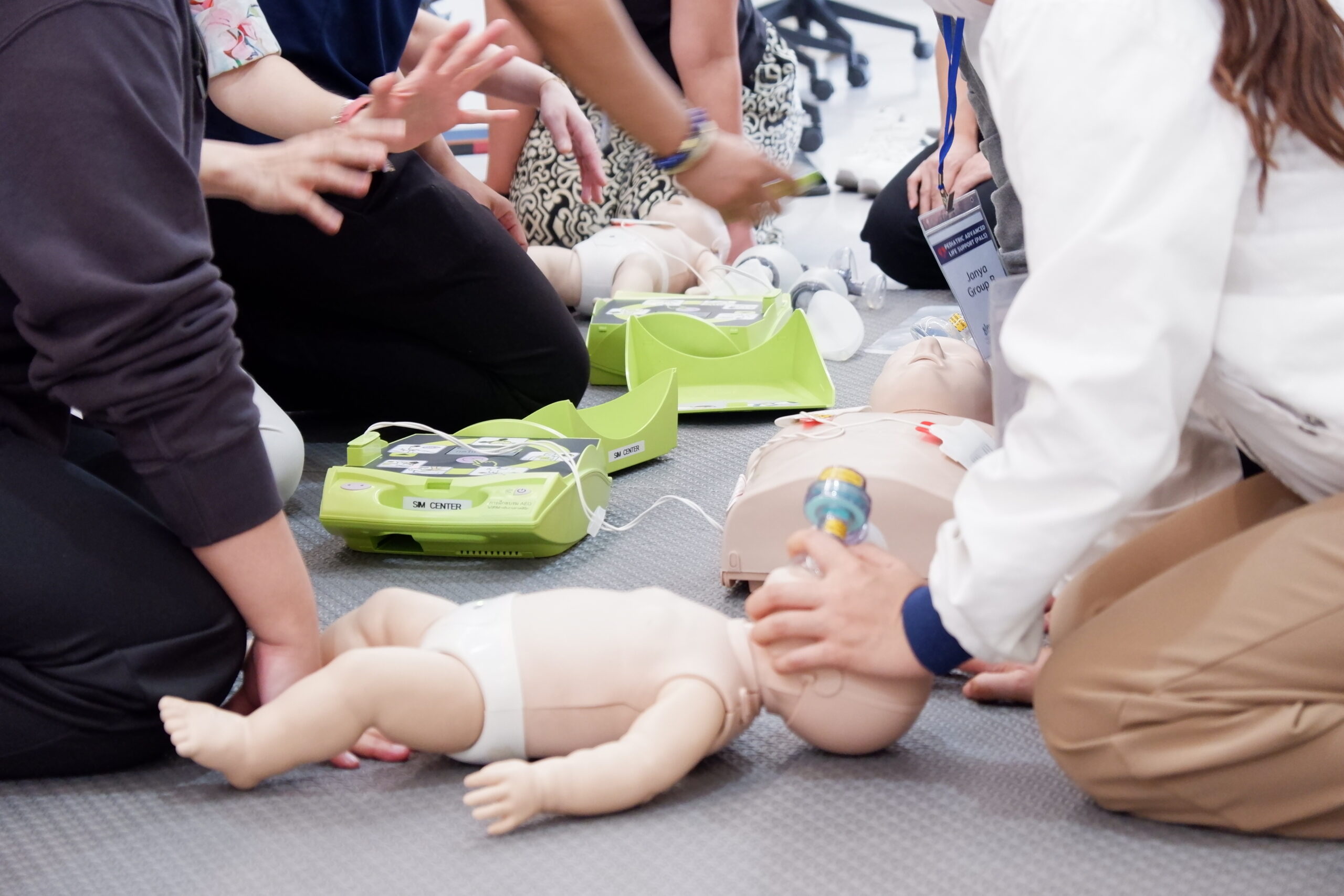 ภาพบรรยากาศกิจกรรมการฝึกอบรมหลักสูตรการช่วยชีวิตเด็กขั้นสูง – การ์ด AHA ซึ่งเป็นหลักสูตรที่เป็นมาตรฐานของสมาคมแพทย์โรคหัวใจแห่งประเทศสหรัฐอเมริกา (The American Heart Association) การฝึกอบรมในครั้งนี้จัดให้กับแพทย์และพยาบาลวิชาชีพ ซึ่งทำให้ผู้เข้ารับการฝึกอบรมได้รับประสบการณ์ในการดูแลประเมิน วินิจฉัยภาวะหัวใจหยุดเต้นและคลื่นไฟฟ้าหัวใจที่ผิดปกติ สามารถใช้อุปกรณ์เครื่องมือช่วยฟื้นชีวิตและยาที่เกี่ยวข้องได้อย่างถูกต้องมีประสิทธิภาพ เพิ่มทักษะในการสื่อสารและการทำงานเป็นทีมตามมาตรฐานสากล