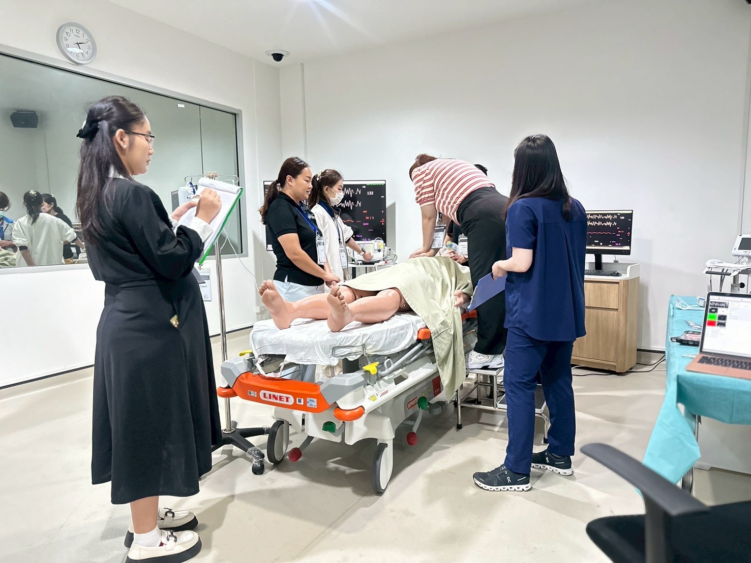 ภาพบรรยากาศกิจกรรมการฝึกอบรมหลักสูตรต่ออายุใบประกาศนียบัตรการช่วยชีวิตขั้นสูง – การ์ด AHA ซึ่งเป็นหลักสูตรที่เป็นมาตรฐานของสมาคมแพทย์โรคหัวใจแห่งประเทศสหรัฐอเมริกา (The American Heart Association) การฝึกอบรมในครั้งนี้จัดให้กับพยาบาลวิชาชีพ โรงพยาบาลเมดพาร์ค และโรงพยาบาลเจ้าพระยา มุ่งเน้นให้ผู้เข้ารับการฝึกอบรมมีความรู้ความเข้าใจเกี่ยวกับการประเมิน วินิจฉัยภาวะหัวใจหยุดเต้นและคลื่นไฟฟ้าหัวใจที่ผิดปกติ สามารถใช้อุปกรณ์เครื่องมือช่วยฟื้นชีวิตและยาที่เกี่ยวข้องได้อย่างถูกต้องมีประสิทธิภาพ รวมถึงเพิ่มพูนทักษะการช่วยฟื้นชีวิตเบื้องต้นและการช่วยชีวิตขั้นสูงตามแนวทางปฏิบัติ นอกจากนี้ยังเพิ่มทักษะในการสื่อสาร และการทำงานเป็นทีมในการช่วยฟื้นคืนชีพขั้นสูง ผ่านการเรียนรู้แบบผสมผสาน ได้แก่ การเรียนรู้แบบออนไลน์, การเรียนในภาคทฤษฎีและภาคปฏิบัติผ่านสถานการณ์จำลอง โดยได้รับเกียรติจากนาวาเอกหญิง แพทย์หญิงจริยา สันตติอนันต์ วิสัญญีแพทย์และรองผู้อำนวยการโรงพยาบาลสมเด็จพระปิ่นเกล้า กรมแพทย์ทหารเรือ ให้เกียรติเป็น Director และทีมวิทยากรซึ่งผ่านการอบรมจากหลักสูตร AHA ACLS Instructor การฝึกอบรมในครั้งนี้ ซึ่งทำให้ผู้เข้ารับการฝึกอบรมได้รับประสบการณ์ในการดูแลประเมิน วินิจฉัยภาวะหัวใจหยุดเต้นและคลื่นไฟฟ้าหัวใจที่ผิดปกติ สามารถใช้อุปกรณ์เครื่องมือช่วยฟื้นชีวิตและยาที่เกี่ยวข้องได้อย่างถูกต้องมีประสิทธิภาพ เพิ่มทักษะในการสื่อสารและการทำงานเป็นทีมตามมาตรฐานสากล