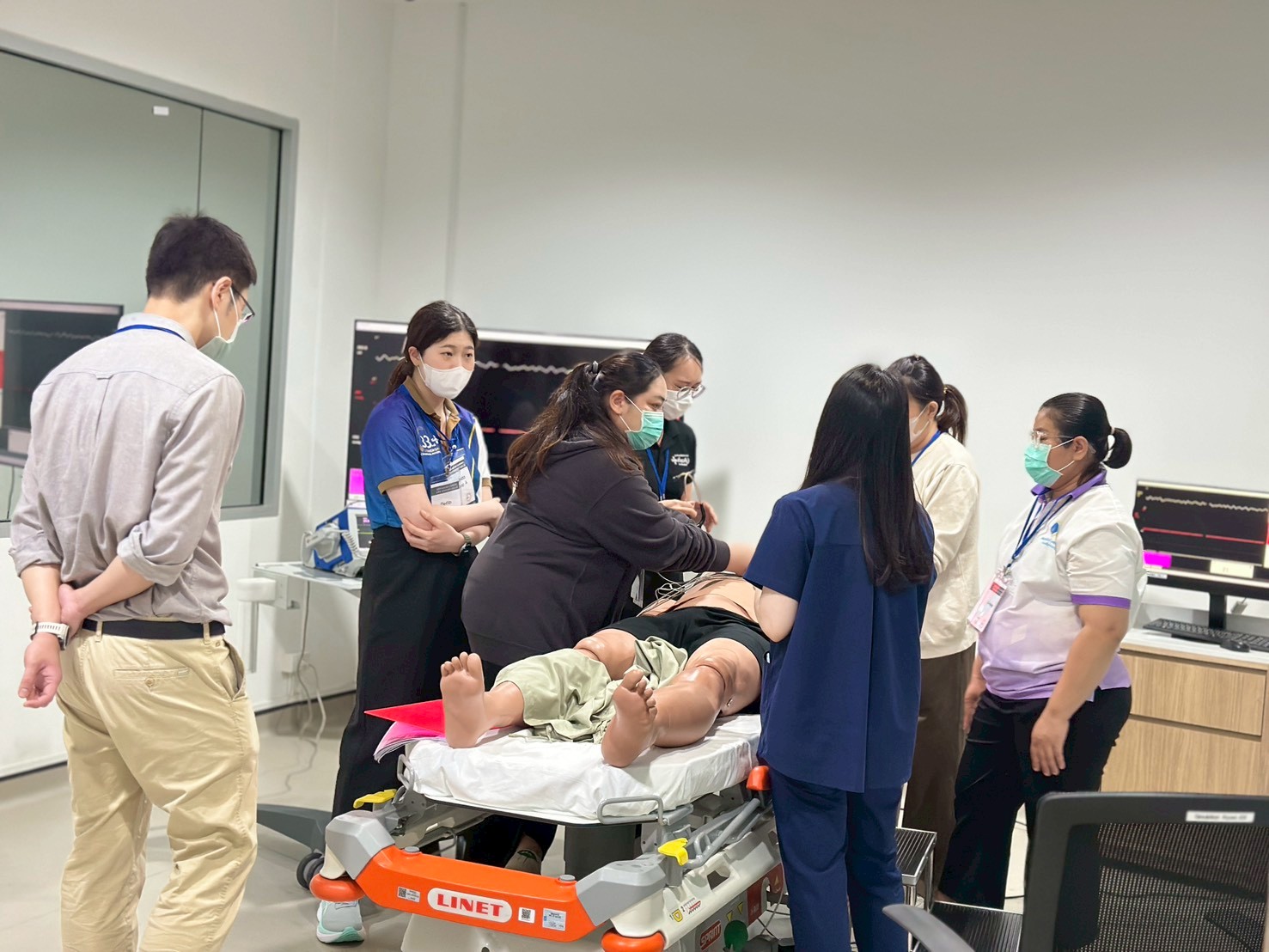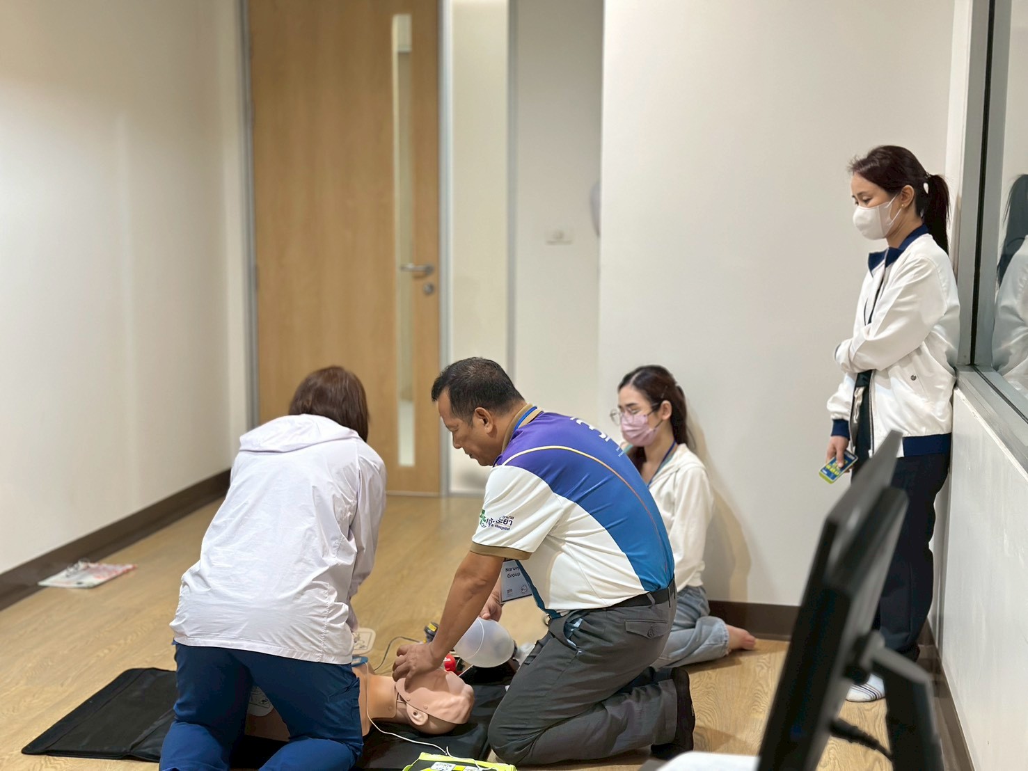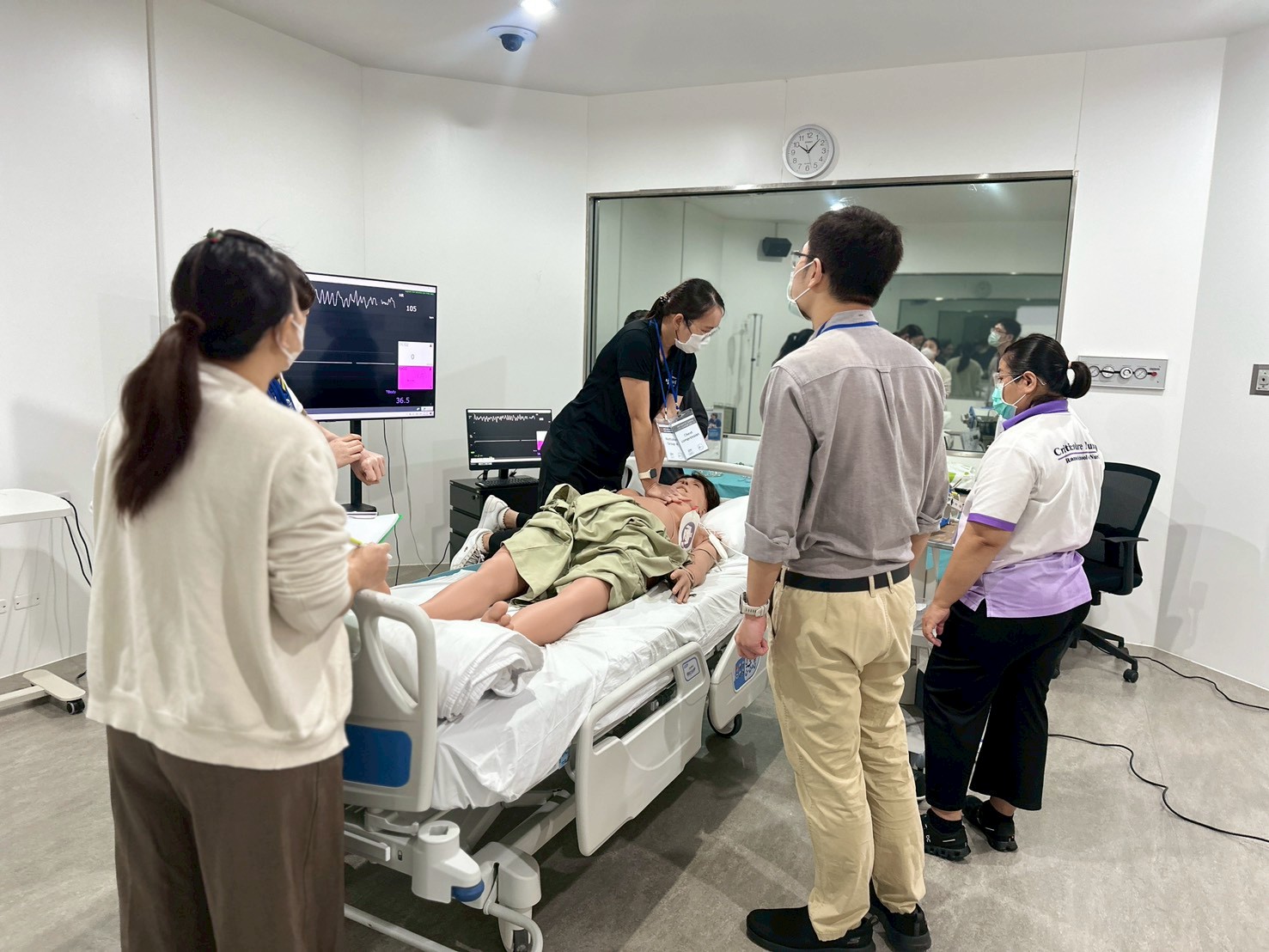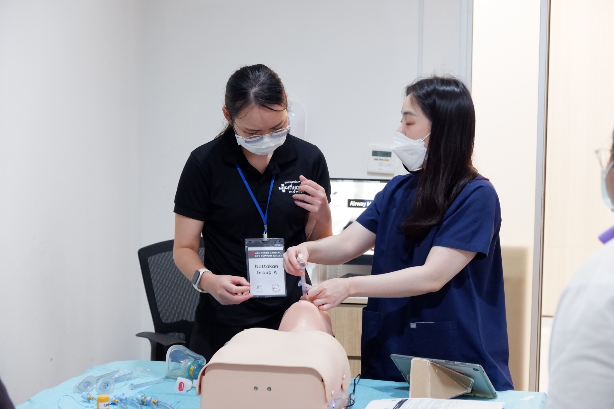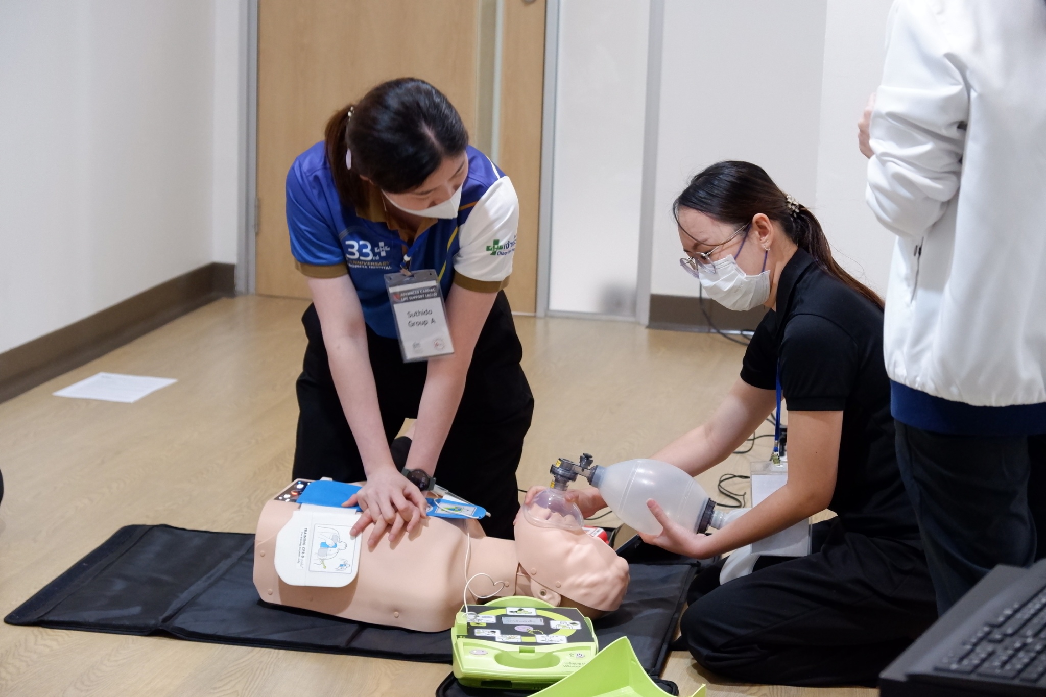 The ACLS Renewal Course-AHA Card, which is a standard course of the American Heart Association (AHA). This training was provided to physician and registered nurses from MedPark Hospital and Chaophya Hospital focusing on knowledge and understanding of assessing and diagnosing cardiac arrest and abnormal heart rhythms, correctly using resuscitation equipment and related medications efficiently. The training also aimed to enhance advanced cardiovascular life support skills following practical guidelines. Furthermore, it emphasized improving communication skills and teamwork in advanced life support scenarios through theoretical and practical training, including simulations. The event was honored by Capt. Dr. Jariya Santatianant, an anesthesiologist and Deputy Director of Somdech Phra Pinklao Hospital, Royal Thai Navy Medical Department, who served as the Director, and instructor who had received training from an AHA-ACLS Instructor. This training provided participants with hands-on experience in managing and diagnosing cardiac arrest and abnormal heart rhythms, correctly using resuscitation equipment and related medications, and improving communication and teamwork skills according to international standards.