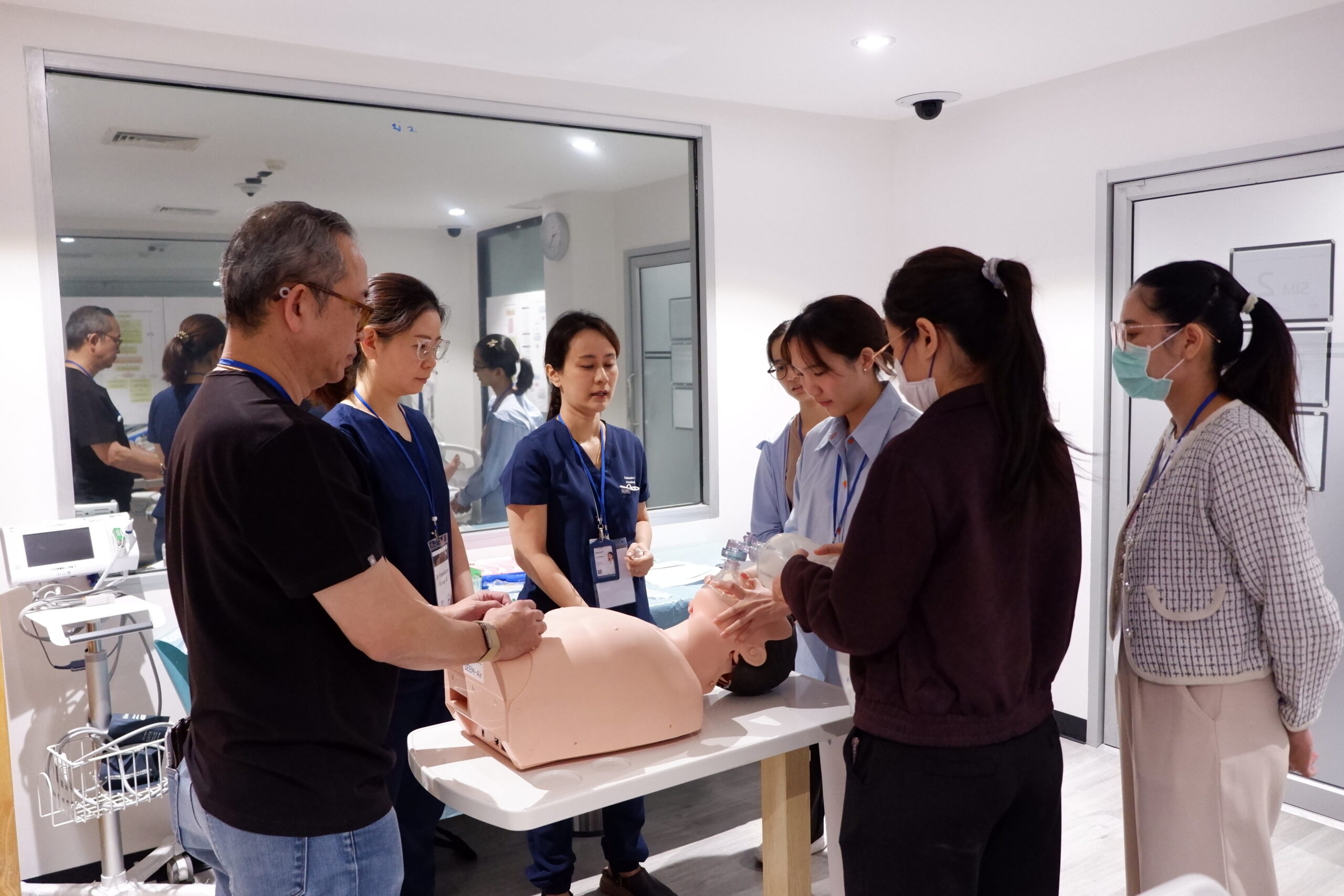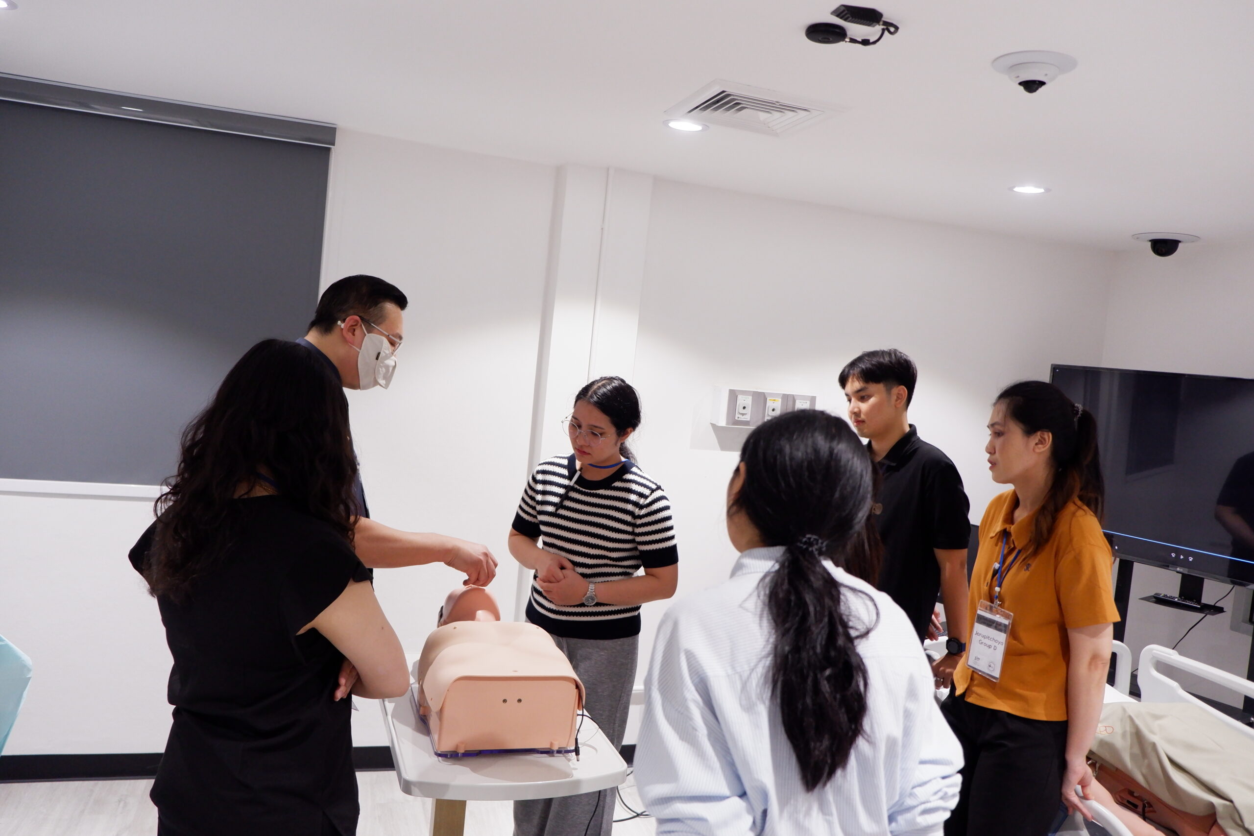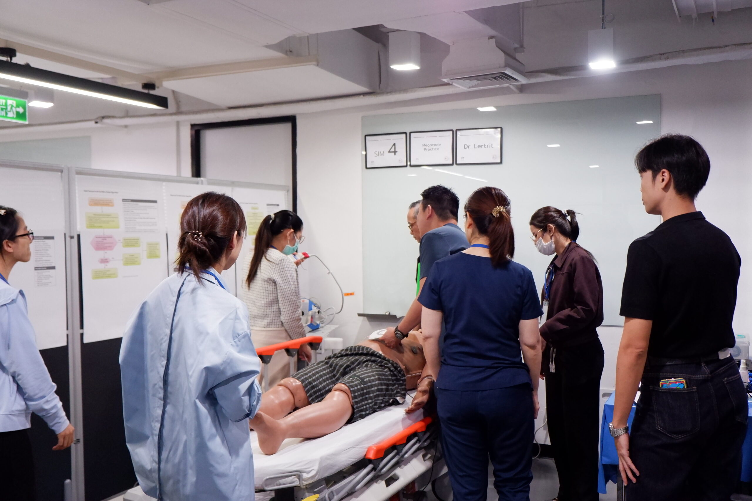 Site Visit Atmosphere from students from the College of Public Health Science, Chulalongkorn University on the topic of “Health Technology and System in Simulation Center” to exchange experiences on clinical learning technology, including medical simulations such as birth and advanced life support mannequins, intubation mannequins, resuscitation mannequins, etc.