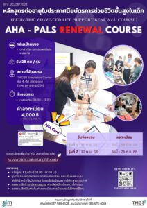 - เพื่อให้ผู้เข้าอบรมเพิ่มพูนทักษะการช่วยฟื้นชีวิตเบื้องต้นและการช่วยชีวิตขั้นสูงตาม PALS systematic approach algorithm